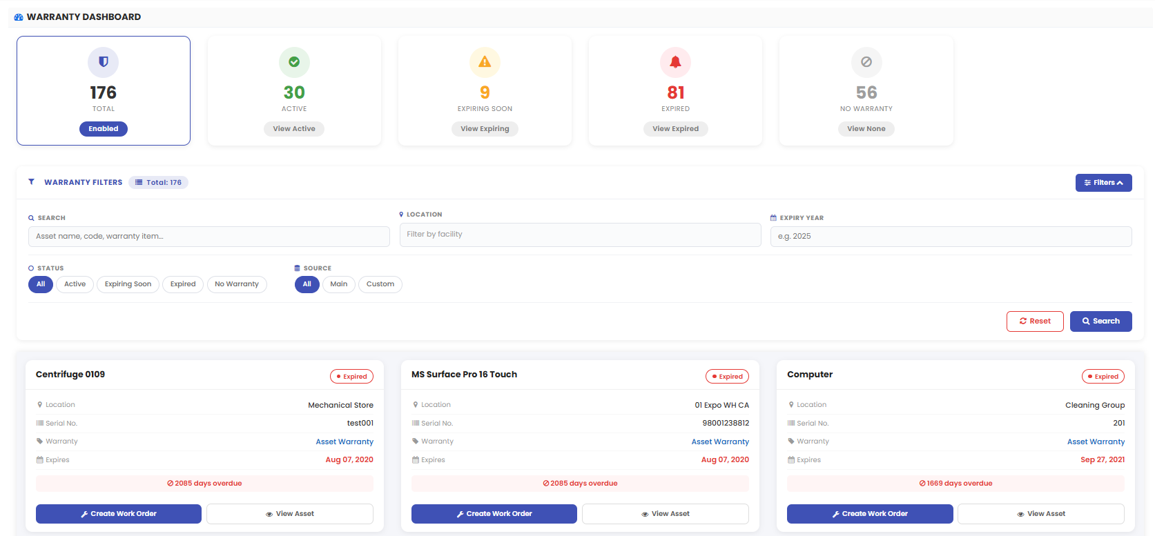- Use the Warranty Dashboard regularly. Monitor expiring warranties proactively to avoid lapses.